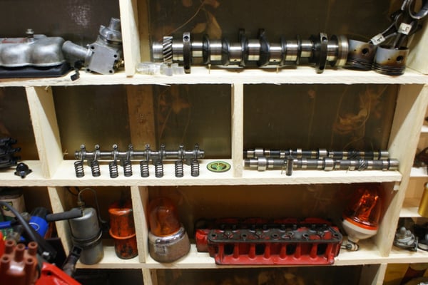 Der Volvo B 18 Motor eignet sich perfekt, um an ihm anzuschauen, wie ein Antrieb funktioniert. Ein "noch"ganzer Motor ( na ja, ich hab ihn schon ein bisschen vorzerlegt) und ein komplett zerlegter Motor, im grossen Setzkasten, dienen und als Anschauungsobjekte.