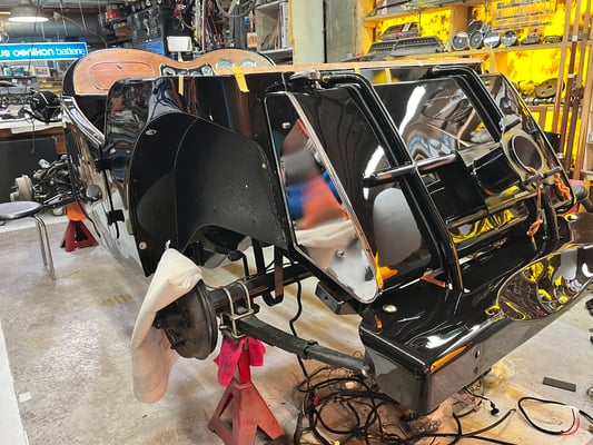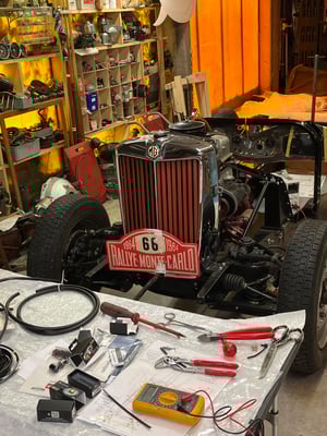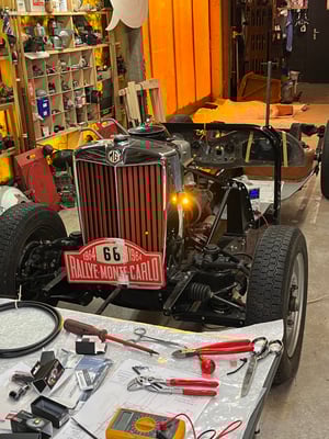 Es läuft perfekt. Die Blechteile sind beim besten Maler. Es bleibt Platz und Zeit das ganze Klein Klein zu erledigen. Lampen, Leuchten richten und wieder fit machen. Die britische Ausgabe des MG TD hatte keinen serienmässigen Blinker. Im heutigen Verkehr ist das schwer, ohne Blinker. Ich habe mich entschlossen Blinker nachzurüsten. Gute, sichtbare, inkl. Warnblinkanlage. Der Motorradzubehör Laden um die Ecke bietet gute Lösungen, so klein und leuchtstark, unglaublich schön und gut. Wir möchten ja mit dem Wagen fahren, sicher und zeitgemäss.