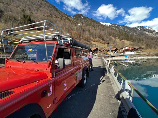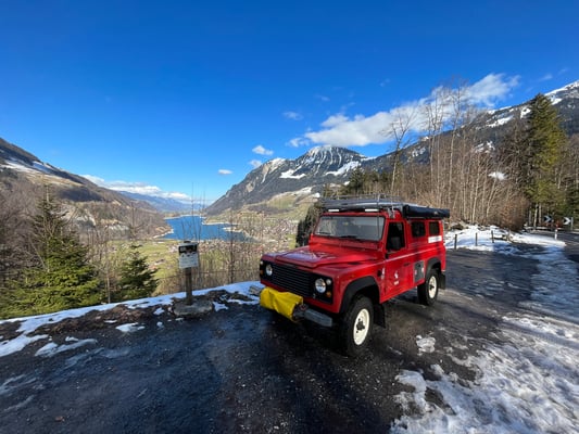 Unter dem gelben Schutz ist eine recht starke Seilwinde mit Fernbedienung.